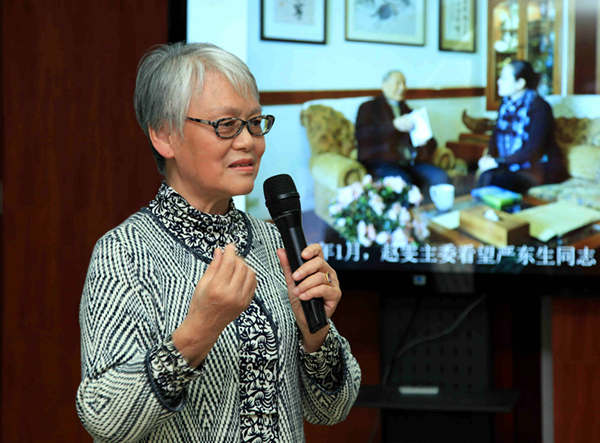 “作为女儿,我心里很敬仰父亲,敬仰了一辈子,因为直到最后一刻,他的人生和人格从未变形过,在轻松时如此,在痛苦时也是如此,他的人生是一以贯之的”,严东生同志女儿严燕来代表家属,在致辞中说,“回首爸爸的一生,他是幸运的,在祖国变革和大转折的时代,能够发挥自己的才华;在国家历次重大科技政策、战略部署的关键点上,能够直接参与其中,并有所贡献;改革开放后,又走出国门,与国际知名学术机构建立合作关系,为年轻一代发展开创空间,他是真正为国家科学发展,为‘强国路’做出了贡献。”