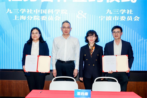 活动现场,社中国科学院上海分院委员会与社宁波市委举行社务合作签约仪式,在苏良碧、张立央的见证下,社中国科学院上海分院委员会秘书长罗丽庆、吴波华分别作为双方代表签署合作协议,标志着两地九三学社在资源共享、人才交流、成果转化等方面的合作迈入常态化、制度化新阶段。