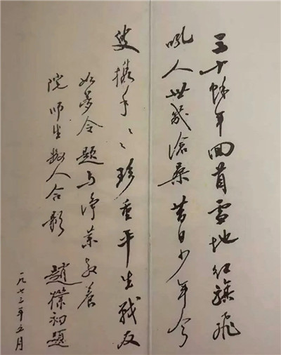 1972年5月,当年净业教养院的师生相逢,伯父朴老欣然作《如梦令 题与净业教养院师生数人合影》。