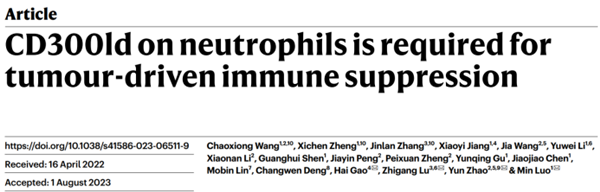 9月6日,中国科学院分子细胞科学卓越创新中心赵允研究组与复旦大学罗敏/卢智刚/高海研究组合作研究成果:CD300ld on neutrophils is required for tumor-driven immune suppression在线发表于国际学术期刊Nature。