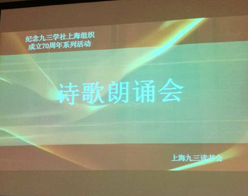 成立于2016年2月的“上海九三读书会”,是社员自发组建,以书会友、交友,提高文化修养的一个活动团体。为纪念社上海组织成立70周年,读书会策划了本次诗歌朗诵活动,消息一公布,立即受到了成员的热烈响应,大家踊跃报名,人数远远超出场地容纳的上限,组织者不得不承诺分期举行活动。