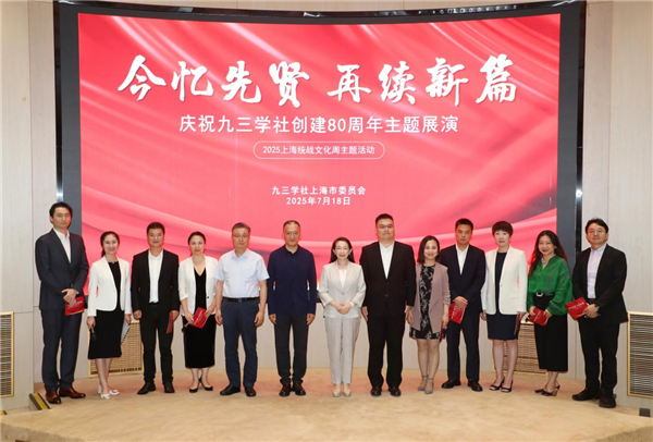 7月18日,九三学社上海市委在复旦大学举办“今忆先贤 再续新篇——庆祝九三学社创建80周年主题展演”,这也是2025年上海统战文化周主题演绎活动之一。社上海市委专职副主委詹咏、秘书长张磊,嘉兴市政协原副主席、社嘉兴市委原主委、嘉兴市文史研究馆名誉馆长马玉华,社嘉兴市委副主委迮育彬等出席活动。