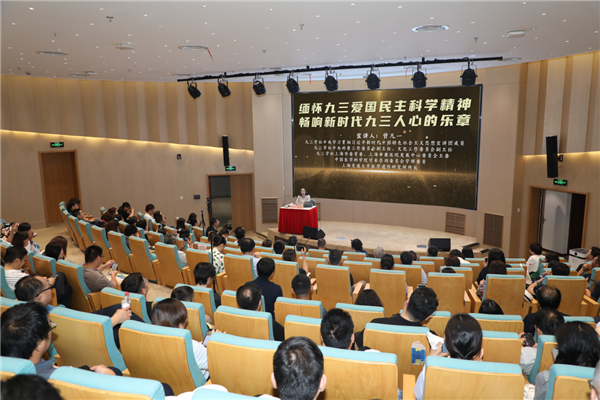 中国医学科学院学术咨询委员会学部委员、社上海市委常委、上海交通大学医学遗传研究所所长曾凡一作题为《缅怀九三爱国民主科学精神,畅响新时代九三人心的乐章》的报告,她也是九三学社中央学习贯彻习近平新时代中国特色社会主义思想宣讲团成员,结合民主党派前辈谈家桢先生西迁办学的动人故事,号召广大社员立足新征程,以科技智慧服务社会、以“九三”品格彰显时代担当。