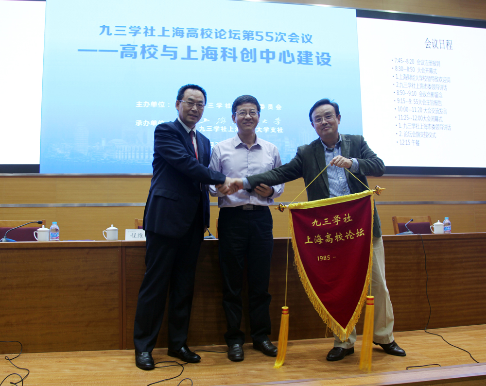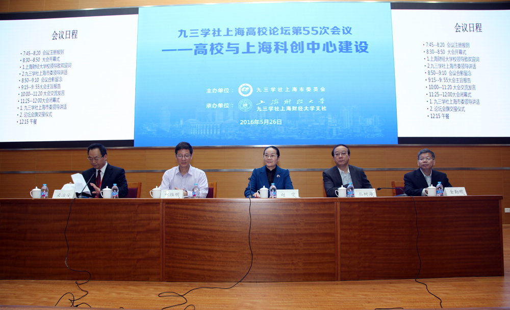 5月26日,九三学社上海高校论坛第55次会议在上海财经大学召开,来自上海10多所大学的九三学社社员围绕“高校与上海科创中心建设”的主题进行了研讨。