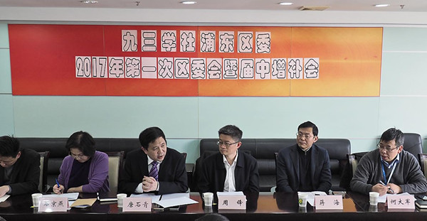 2月15日,九三学社浦东区委召开2017年第一次区委会暨届中增补会议。会议由社区委主委唐石青主持,社市委专职副主委周锋,中共浦东新区党委统战部副部长蒋海,社区委副主委何大军、江泉、封晓俊、黄海华,秘书长李家玲,社市委组织部副调研员王长云及社区委委员、各支社主委、社区委专委会主任等30余人出席。
