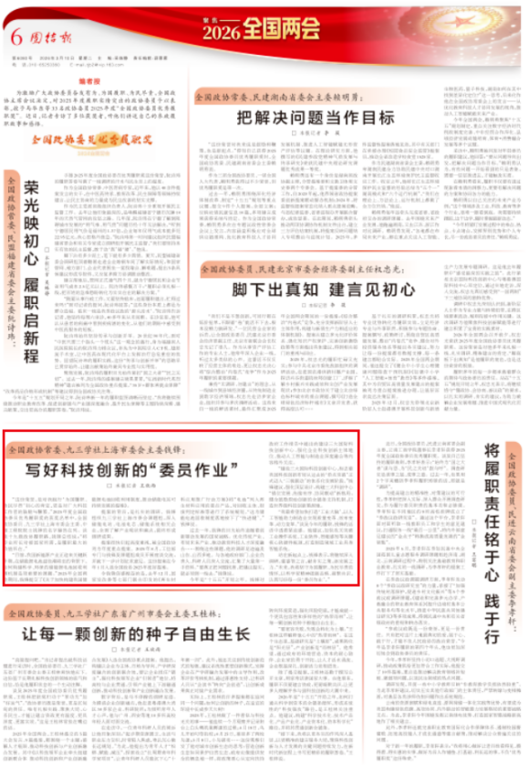 “这份荣誉,是对我践行‘为国履职、为民尽责’初心的肯定,更是对广大科技工作者的鼓励与鞭策。”2025年度全国政协委员优秀履职奖的获奖名单中,全国政协委员、九三学社上海市委会主委、中国工程院院士钱锋的名字赫然在列。谈及十九载政协履职路,钱锋总结说:“将专业所长对接国家所需,是履职最大的价值所在。”