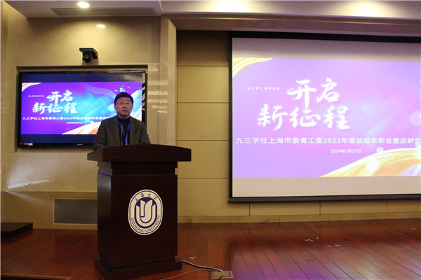 1月27日下午,九三学社上海市委青年工作委员会在上海大学举办2023年度总结表彰会暨迎新活动。上海大学党委副书记欧阳华,九三学社上海市委专职副主委李国娟,上海大学党委常委、统战部部长曹为民,九三学社上海市委副秘书长、参政议政部部长张磊,九三学社上海大学委员会主委许斌应邀出席会议。社市委青工委主任贺仁龙,副主任卜永强、丁军、刘健惠、郑路逸、翁丹燕,社上大委员会副主委徐韬等120余位青年社员参加会议。社市委青工委委员秦嘉玮主持总结表彰会,社奉贤区青工委委员何一舟、朱晓筠主持迎新活动。