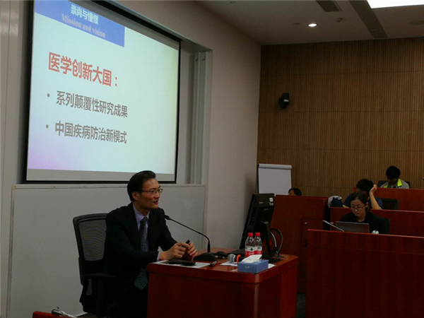 5月20日晚,九三学社上海市委副主委、中国科学院院士、同济大学副校长陈义汉教授在同济大学经管学院举办的名家讲堂上做题为“中国疾病防治研究——机遇与挑战”的主题讲座。
