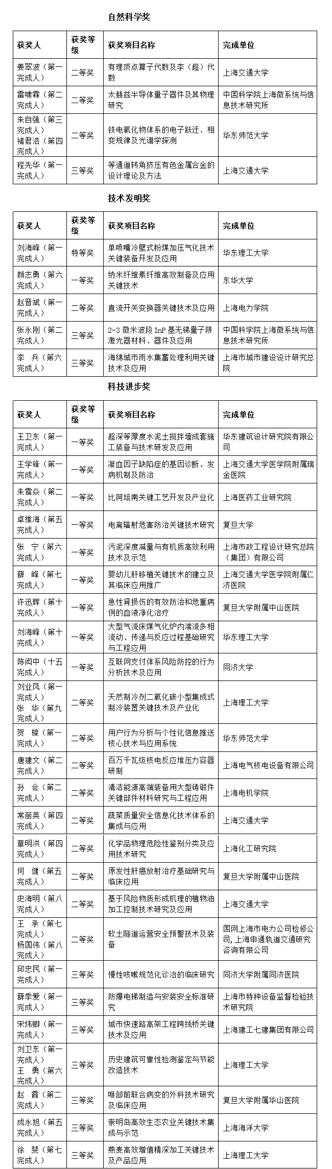 据悉,此次2015年度上海市科学技术奖共授奖313项(人)。其中,授予丁文江、金亚秋科技功臣奖;授予31项成果自然科学奖;授予32项成果技术发明奖;授予243项成果科技进步奖;授予5位外籍专家国际科技合作奖。