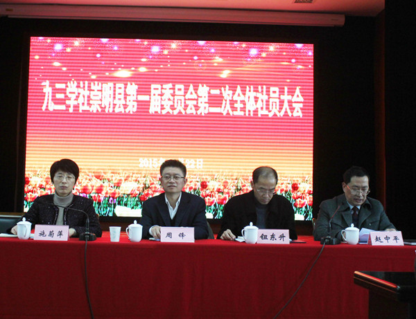 12月22日下午,九三学社崇明县第一届委员会第二次全体社员大会召开,全国政协委员、上海市政协副秘书长、社市委专职副主委周锋,中共崇明县委统战部副部长钮东升,社县委主委施菊萍,社市委组织部副调研员王长云出席,会议由社县委副主委赵中平主持,52名社员参加了会议。