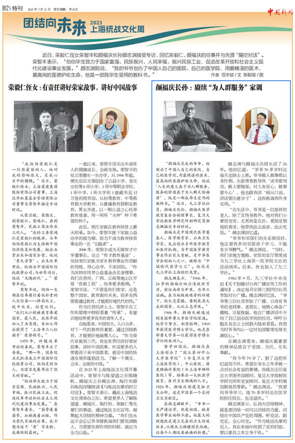 2023年统战文化周的开幕活动上,陈望道、颜福庆、陶行之、荣毅仁等统战先贤的后人在现场用“诗朗诵”的形式与先辈们进行了一场“时空对话”。