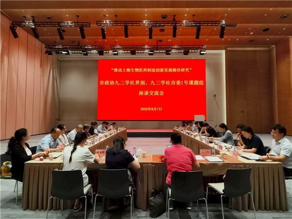 8月7日,市政协九三学社界别、九三学社市委“1号课题”——“推动上海生物医药制造创新发展路径研究”课题组赴漕河泾新兴技术开发区开展联合调研,并交流座谈。座谈会由市政协副秘书长、社市委专职副主委詹咏主持。