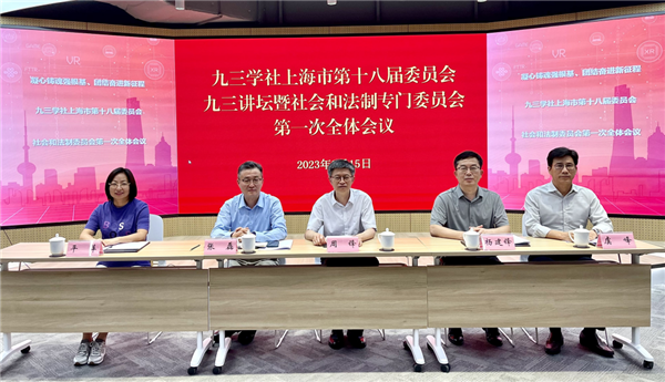 9月15日,为深入学习贯彻习近平新时代中国特色社会主义思想和中共二十大精神,推动“凝心铸魂强根基、团结奋进新征程”主题教育走深走实,九三学社上海市第十八届委员会社会和法制专门委员会在上海城市数字化转型体验馆召开第一次全体会议,社市委专职副主委周锋,社会和法制专委会主任杨建锋,副主任虞峰、平萍,以及50余位委员出席会议。会议由虞峰副主任主持。