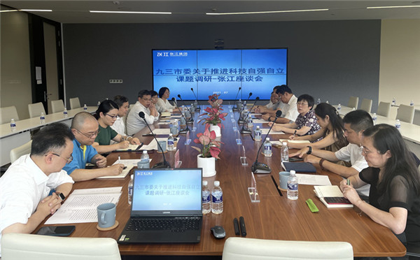 7月19日下午,九三学社上海市委《社务工作推进科技自立自强的路径探索研究》课题组赴张江开展推进科技自立自强调研座谈。社市委原副主委、市政协提案委常务副主任黄鸣,社市委研究室副主任曹晓燕,课题负责人、科技部上海培训中心培训部主任李韵璇参与调研。社市委常委、浦东新区政协副主席唐石青,社浦东区委主委何大军、副主委高晓燕陪同调研。