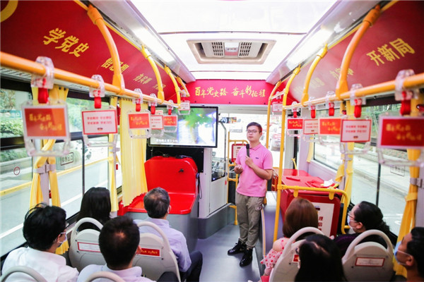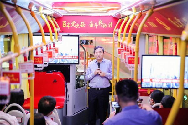 巴士从“中共一大”出发,途径渔阳里、“二大会址”“上海历史博物馆”“五卅运动纪念碑”“永安百货”“外滩陈毅广场”“上海工部局大楼”,随着巴士徐徐前行,讲解员深情讲述中国共产党从石库门到天安门的革命历程,这中间的每一个感人故事,每一处历史遗迹,无不见证着中国共产党筚路蓝缕的光辉历程和坚定的初心使命。