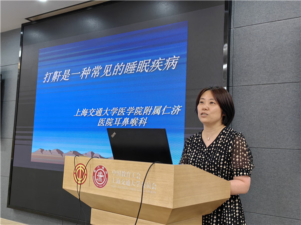 7月17日下午,九三学社上海交通大学委员会在徐汇校区铁生馆举办“九三人之家”医学科普讲座,由九三学社社员、上海交通大学医学院附属仁济医院耳鼻喉科副主任医生张奕主讲,讲座主题为“睡眠呼吸暂停综合症及耳鼻喉常见疾病预防”,共有34名社员参加活动。