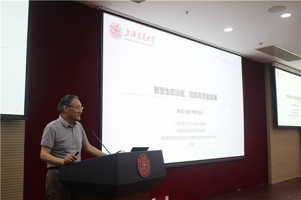 接着,社员、上海交通大学设计学院教授蔡永立作题为“智慧生态治理,赋能高质量发展”的报告,为大家阐释了关于智慧生态治理的背景、问题和对策。他论述了生态治理的重要性、复杂性、艰巨性和机遇,认为生态治理的数字化转型还面临着缺乏系统认知与理论指导、关键技术亟待突破、“多跨”协同机制尚未建立完善,以及各层级“复合型”人才缺乏等问题,并提出了“三全”“三化”“三新”的生态治理思路,致力于打造“全程智治”的技术体系,如今已经取得了一些基础成果。他期待着与更多的“九三”交大社员们加强深度合作,为我国的生态治理事业共同添砖加瓦,贡献力量。