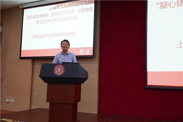 依照九三学社上海市委关于在全市各级组织中深入开展“凝心铸魂强根基、团结奋进新征程”主题教育的通知精神, 6月16日下午,九三学社上海交通大学委员会在校新行政楼举办了主题教育活动,并对2022年度九三学社上海交通大学委员会的“先进社员”进行表彰。九三学社中央委员、上海市委副主委、上海交通大学委员会主委刘成良,中共上海交通大学校党委统战部副部长张杰,社市委组织部副部长陈欢,社金山区委副主委童天中,社上海交通大学委员会副主委冯传良、严亚贤、季丹、李元超,以及委员代表和社员代表共计50余人出席了大会。会议由社上海交通大学委员会秘书长张鹏主持。