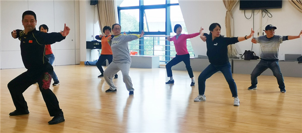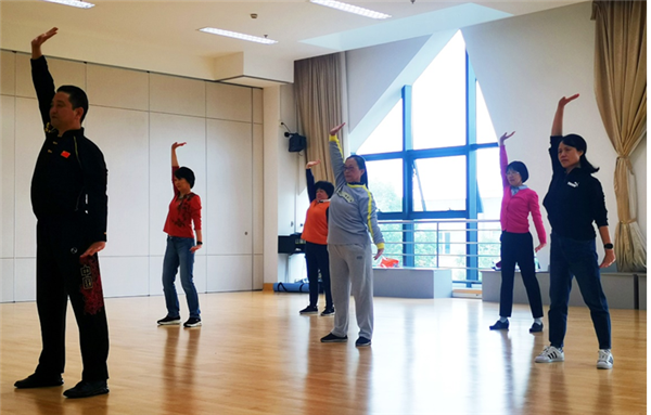 顾剑平用通俗易懂的语言讲解动作细节,并以标准的示范动作带着社员们一遍一遍练习。姚武还精心准备了八段锦功法书送给大家。