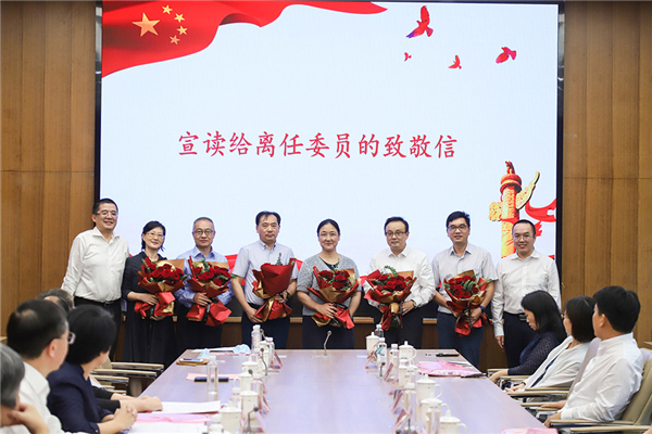 大会向李道季、吴鹏、柯政、何青、廖斌、周岭6名离任委员宣读致敬信并献花,还赠送了一幅顾琴老师的书法作品,感谢他们多年来为委员会发展作出的贡献。