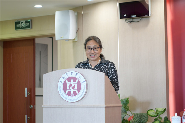 朱惠蓉代表上海中医药大学党委对大会的召开表示热烈祝贺。她说,中医药大学党委历来高度重视民主党派工作,社上海中医药大学委员会在校内民主党派中人数不是最多,但工作很有特色,在思想政治学习、参政议政、社会服务、组织建设等方面成绩显著,多次获得社中央和社市委的嘉奖;近年来,为校教研工作做出了重要贡献。她代表校党委对新一届领导班子提了三点期望:首先要加强理论学习,坚定政治立场,深化合作共识,不断提升综合素质能力;二要坚持建强组织体系,着力加强队伍建设,切实增强组织感召力、凝聚力和战斗力;三要围绕中心,服务发展大局,强化责任意识,履职担当作为,着力发挥民主党派作用。
