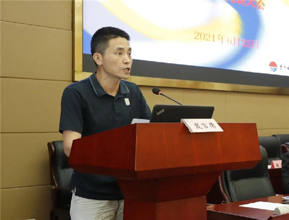 民建东方国际(集团)有限公司支部主委贺子祥代表集团民主党派向大会致贺词。