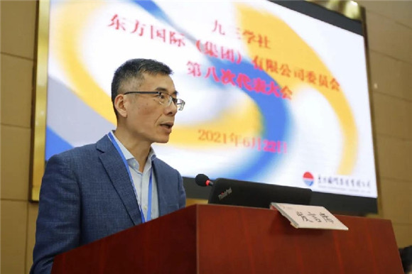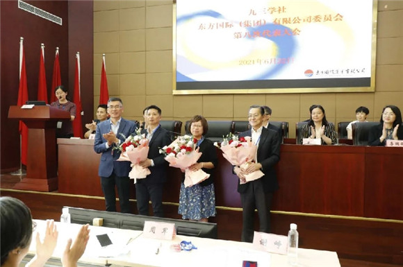 大会听取并审议了《九三学社东方国际(集团)有限公司第七届委员会工作报告》,并选举产生了九三学社东方国际(集团)有限公司第八届委员会,马妮、王崴、李勇、李颖君、沈剑、陈颖、周军、张贇、贾一亮、董翔和薛斌11名同志当选为第八届委员会委员。在随后召开的九三学社东方国际(集团)有限公司第八届委员会第一次会议上,李勇当选为主任委员,李颖君、王崴、贾一亮当选为副主任委员。