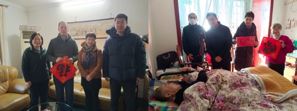 2月8日-9日,九三学社上海大学委员会主委许斌,副主委尹静波、李颖洁,委员王爽,主委助理范明辉等组成“新春慰问团”,先后走访看望了社员陈佩玲、徐钟、葛玉林、魏季和、汪地和邓嘉,向他们表达关心慰问,送上新春祝福。