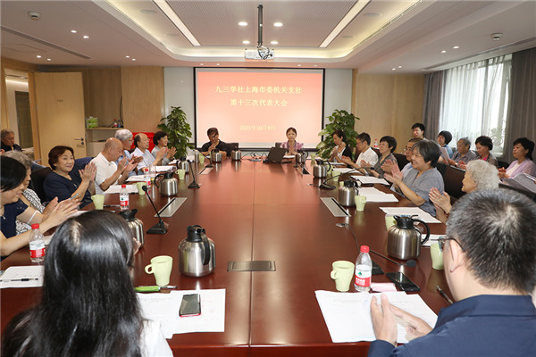 10月9日上午,九三学社上海市委机关第十三次代表大会在民主党派大厦15楼会议室召开。九三学社市委原主委谢丽娟,社市委老领导张良仪、黄鸣、胡忠泽、沈洁,社市委专职副主委周锋、吴健生出席。