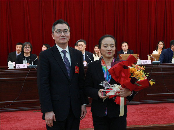 民革闵行区委主委王敏代表各民主党派区委、区工商联向大会致贺词。