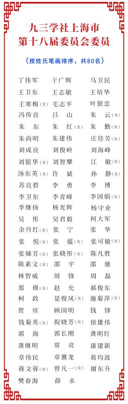 九三学社上海市第十八届委员会委员名单